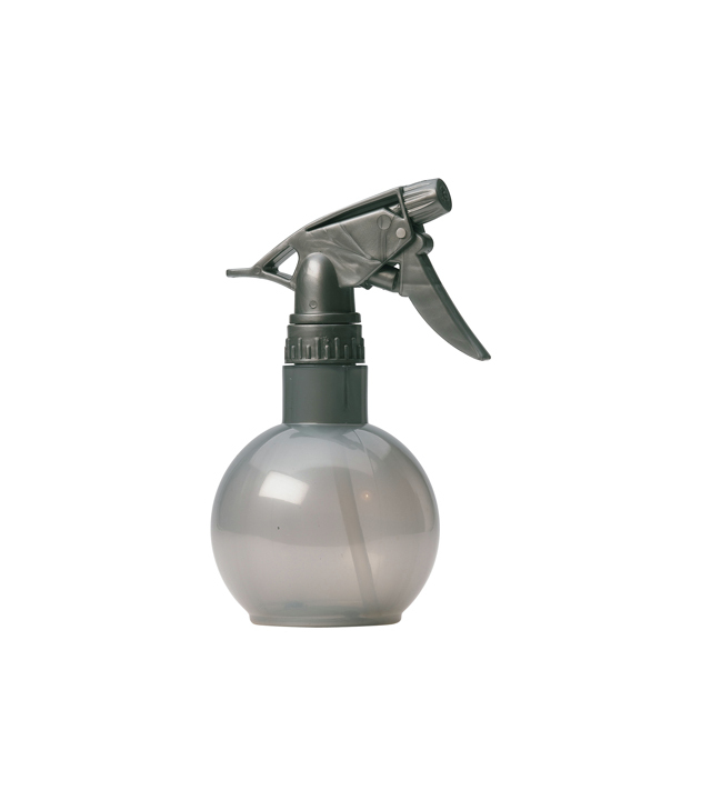 Plastový rozprašovač na vodu v stříbrné barvě.